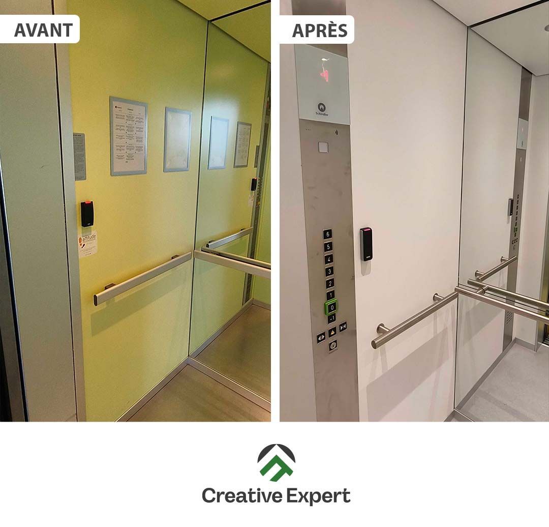 Covering for 3 elevators at Schindler SA in Lausanne.