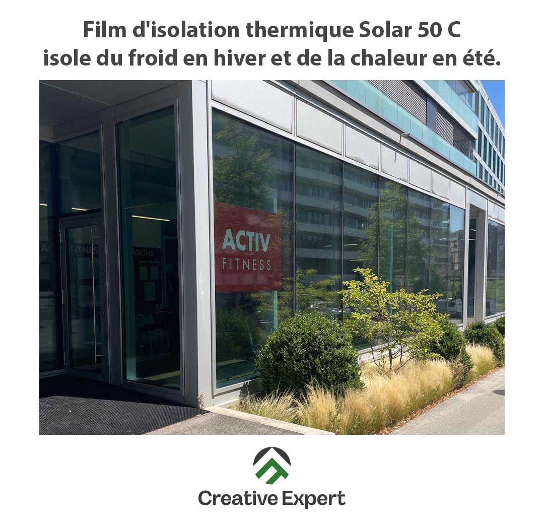 Pose de film thermique solar screen solar 50C sur baies vitrées chez Activ Fitness à Nyon.