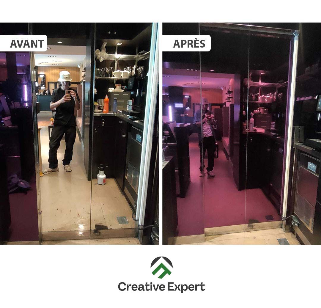Covering des portes coulissantes du bar de l'hôtel Eastwest Genève.