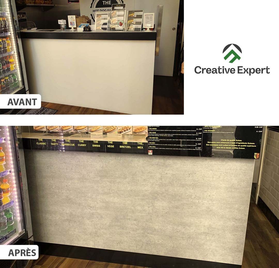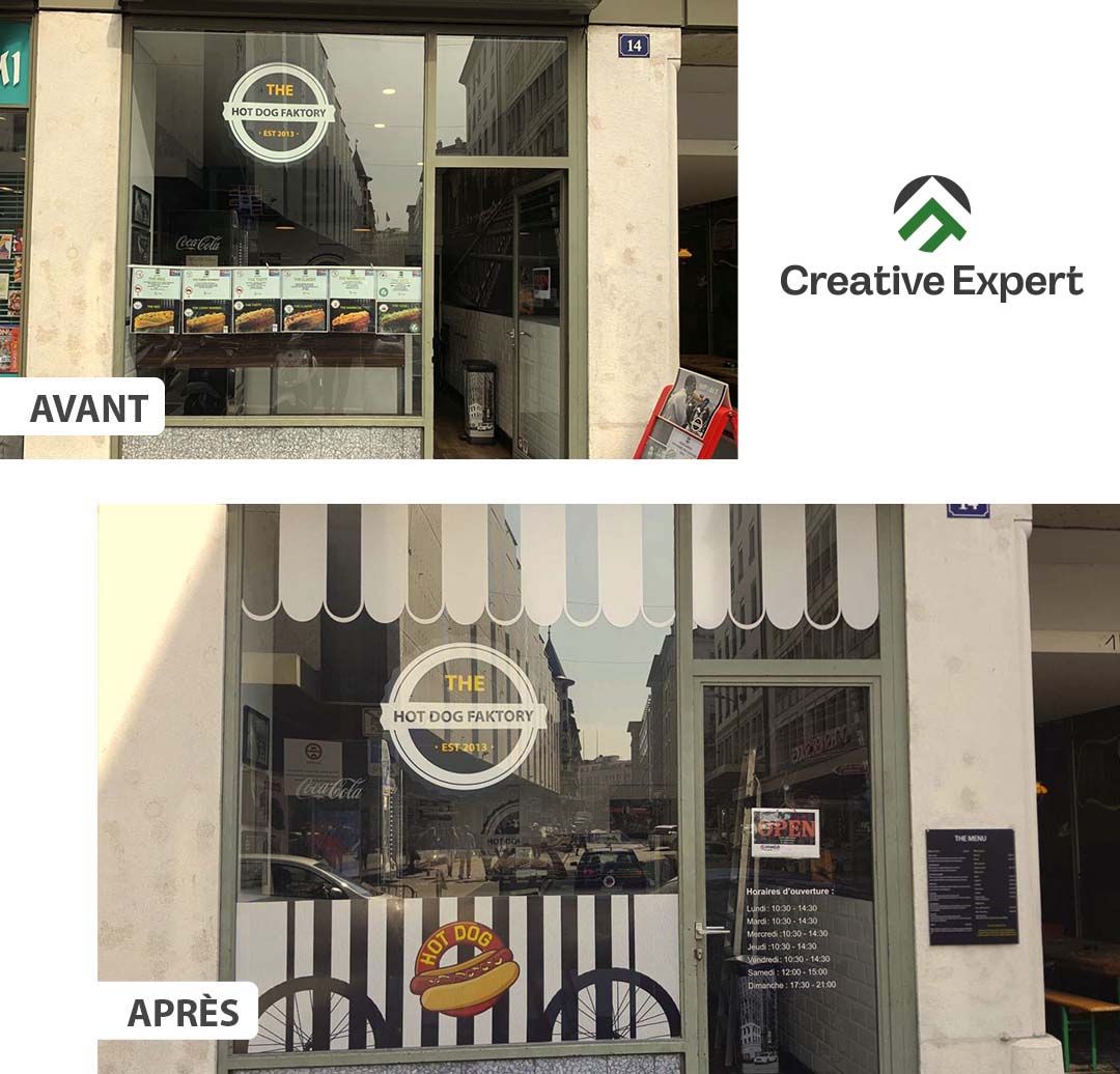 Réalisation de la vitrine et aménagement de la réception chez Hot Dog Faktory.