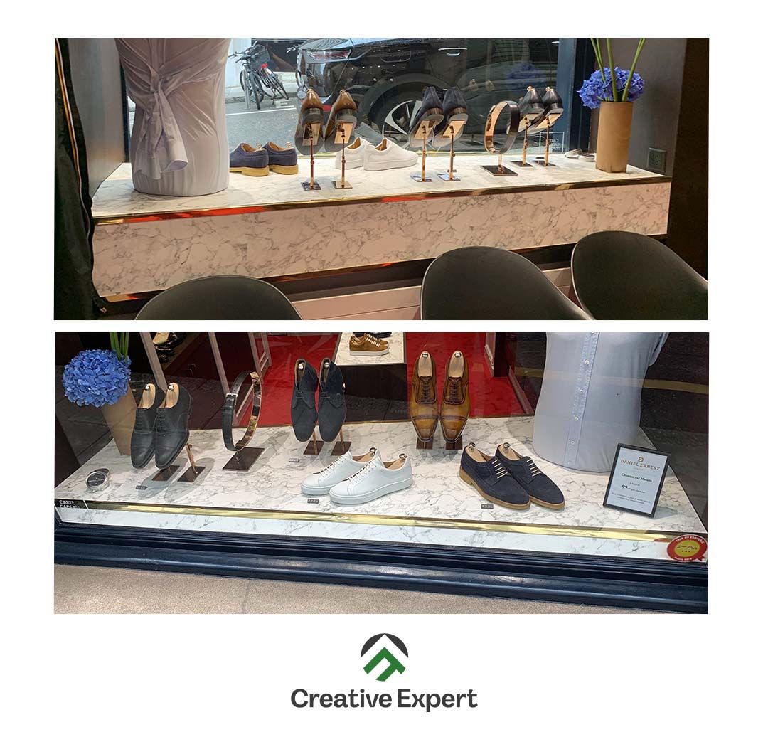 Covering effet marbre sur les meubles de la boutique Septième Largeur.